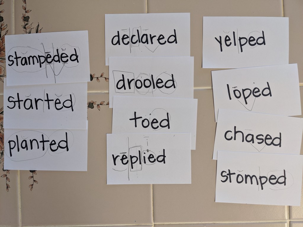 Objective: Students will sort word cards into categories based on the sounds of the -ed inflected ending.